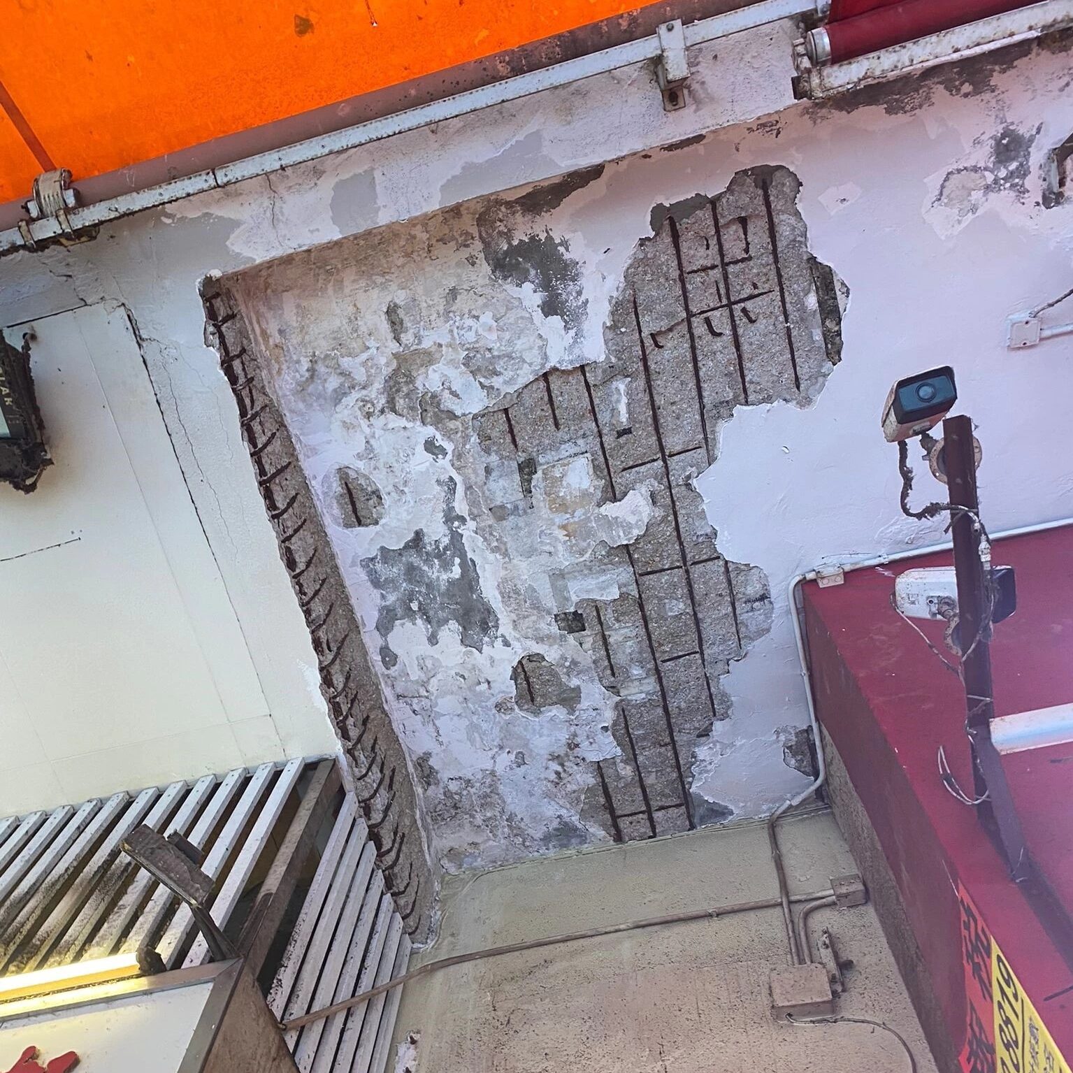簷篷底的石屎剝落